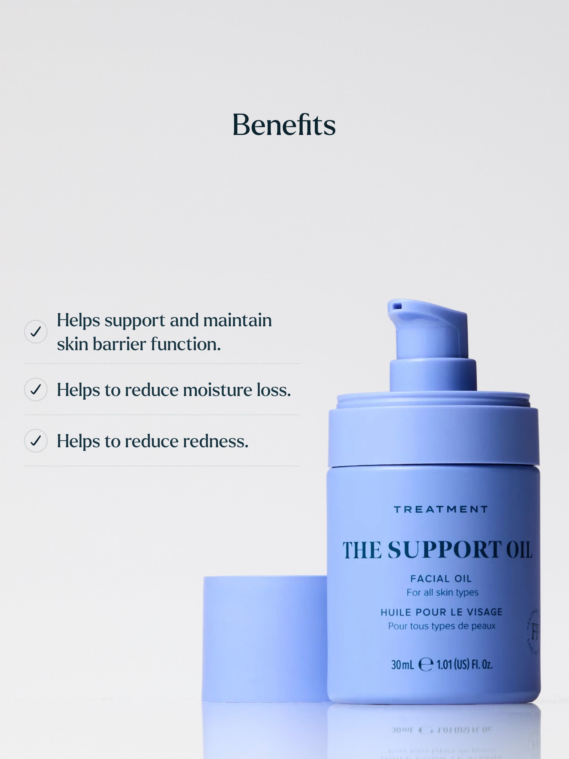A saviour treatment for all skins that need extra support and care, The Support Oil is powered by lipid-rich botanical actives and oils and focuses on instant calming whilst helping to reduce moisture loss and the appearance of redness.