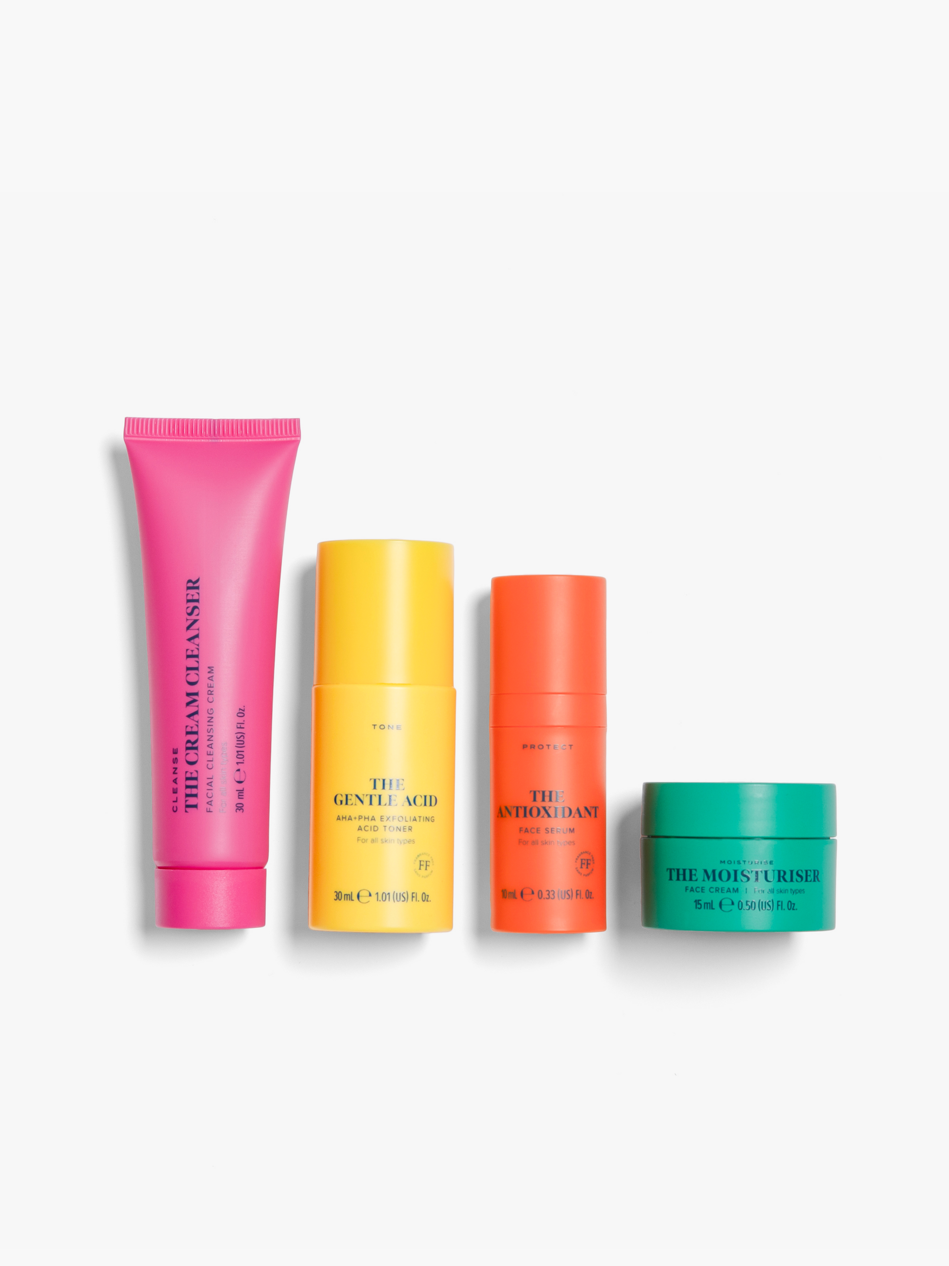 Begin with The Cream Cleanser to condition skin and gently cleanse, before sweeping The Gentle Acid across your face to leave your skin looking smooth, even and radiant. Follow up with The Antioxidant to protect against environmental aggressors and help prevent accelerated ageing, and add the finishing touches to your routine with The Moisturiser to deliver instant hydration.